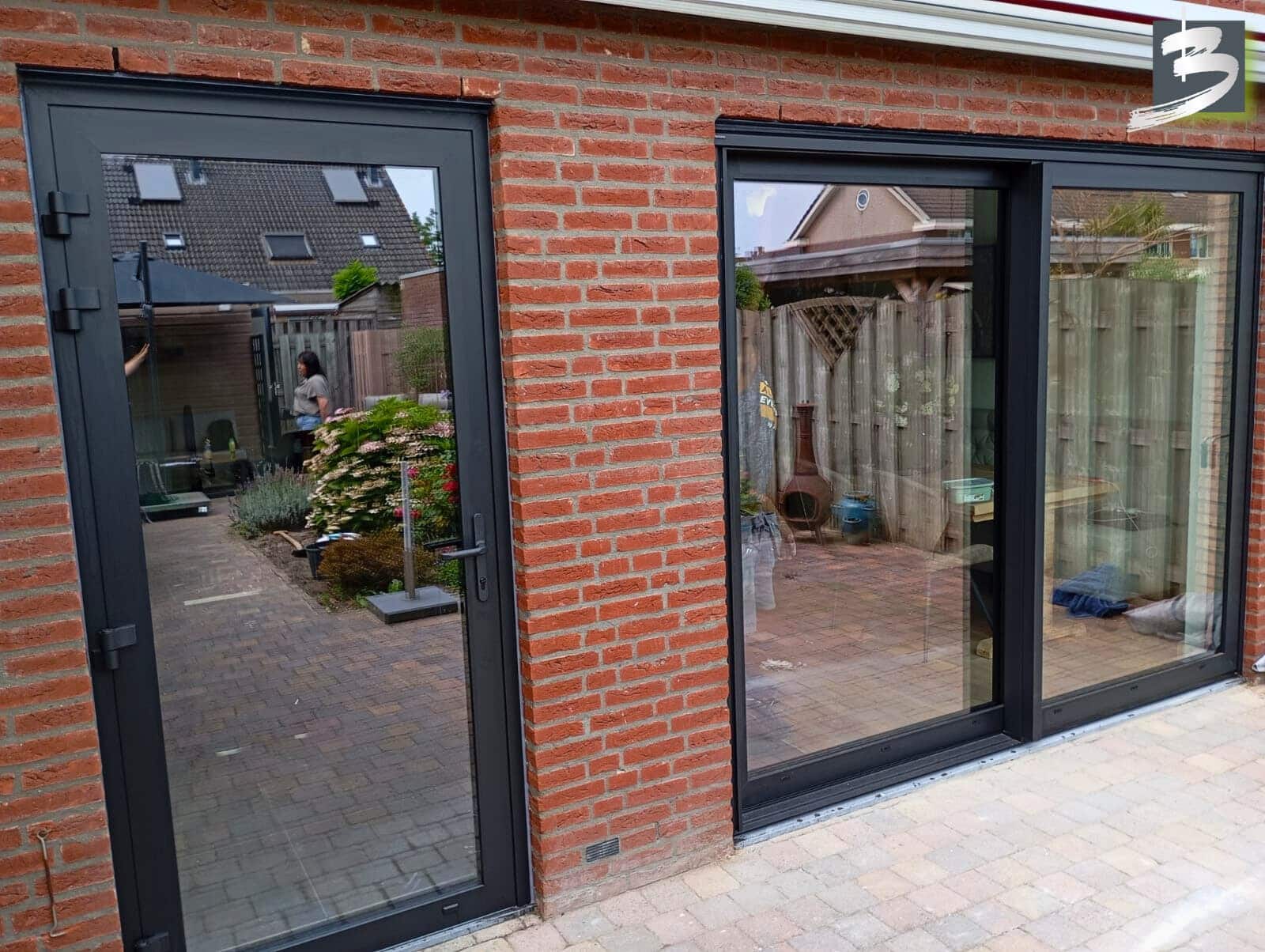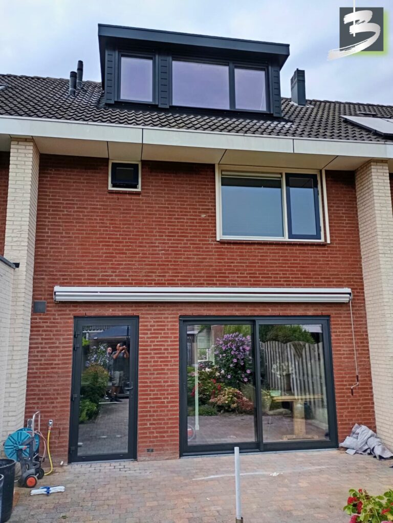Wij hebben aluminium kozijnen geplaatst op de benedenverdieping, evenals een aluminium achterdeur en schuifpui. Door zorgvuldig rekening te houden met de juiste kleurverhoudingen van de verschillende materiaalkeuzes, hebben we een harmonieuze en esthetisch aantrekkelijke combinatie kunnen realiseren.